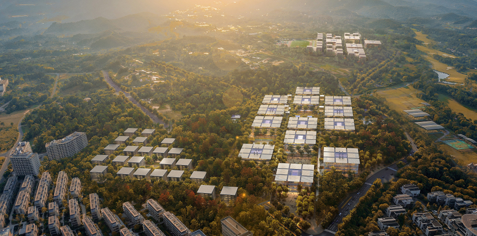 The campus design integrates sustainable principles with modern educational concepts, shaping serene spaces for academic exchange, community life, and quiet contemplation within a poetic forest setting.
